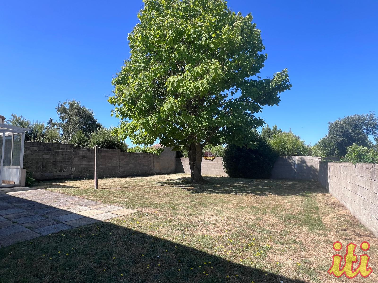 – SOUS COMPROMIS -A 1,5 km des commerces, maison de plain pied évolutive: actuellement deux chambres, un séjour, une cuisine séparée, un garage de 32m2, salle d’eau, wc, sur un beau terrain de 582m2 clos et sans vis à vis, rue très calme. Prévoir des travaux.