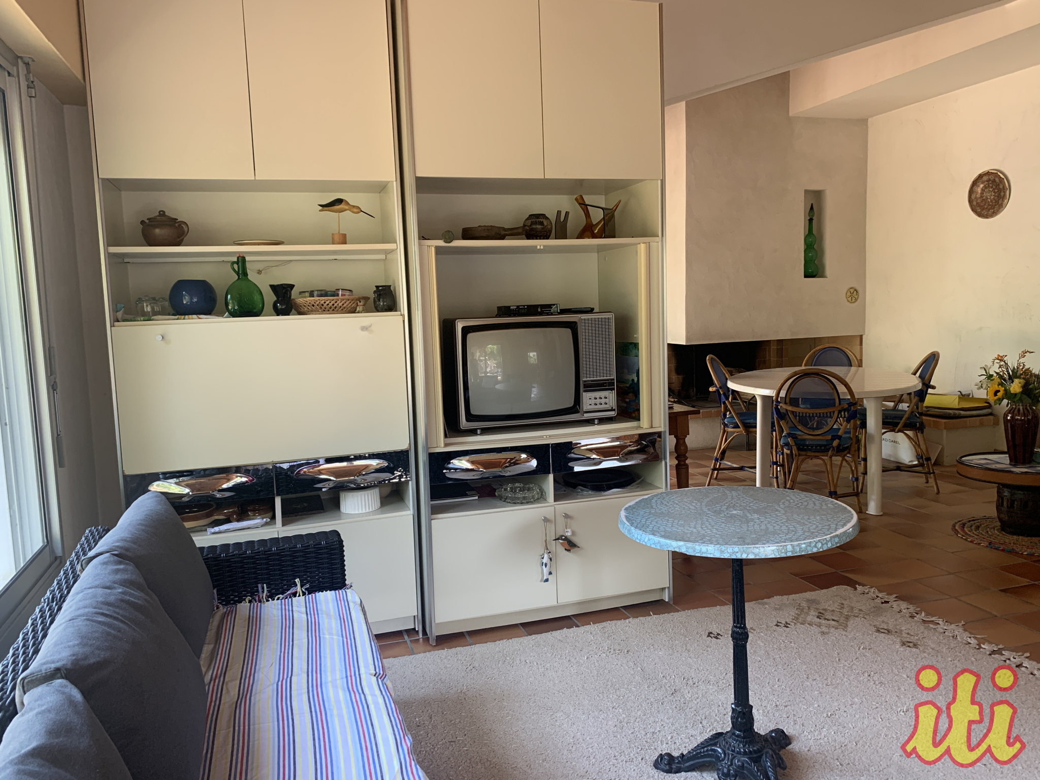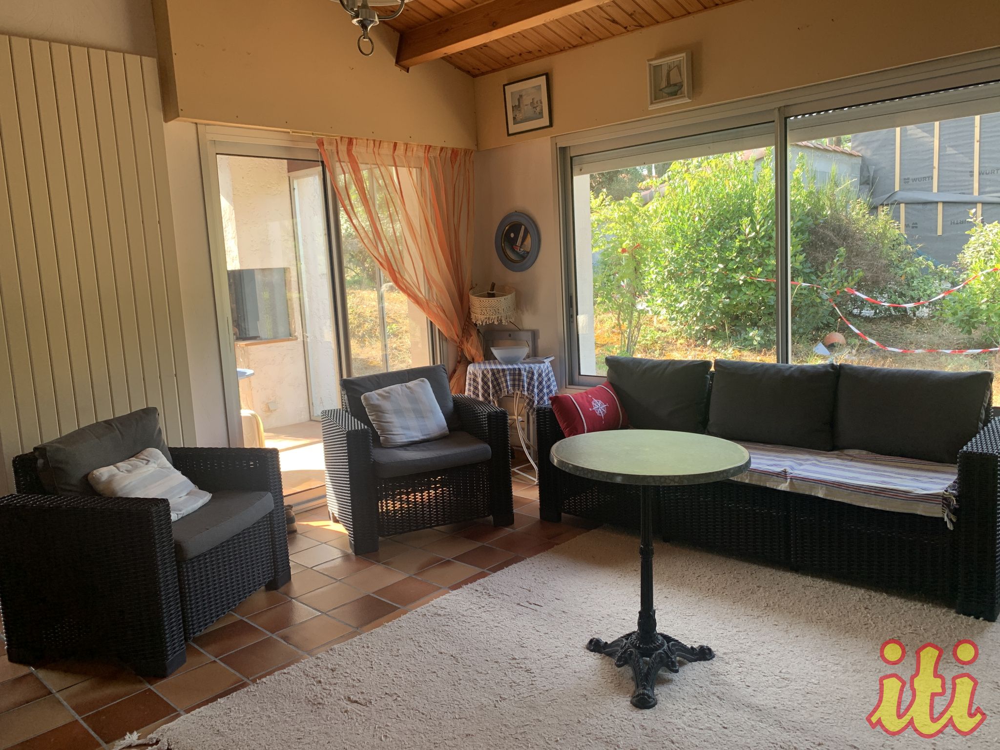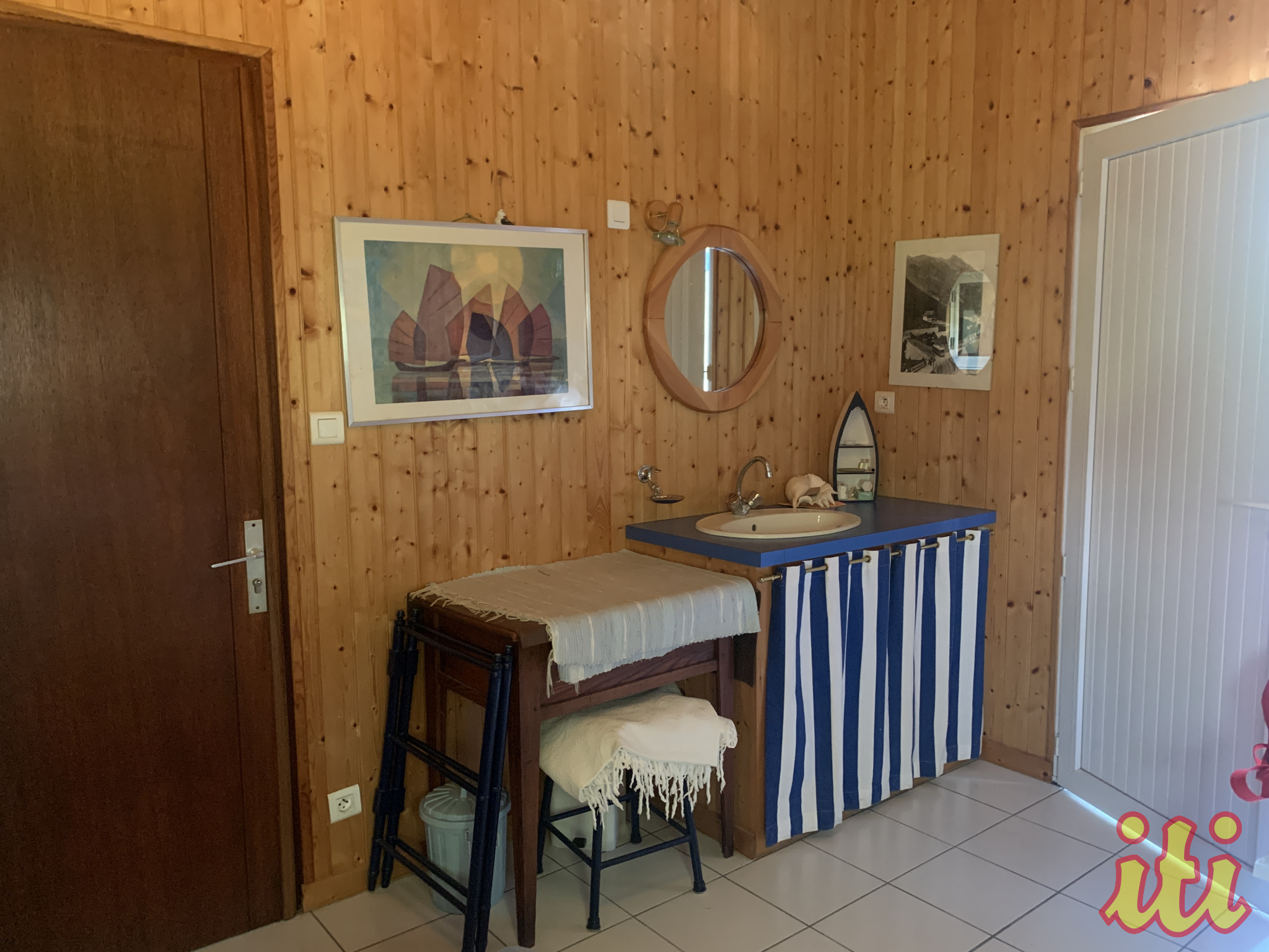 – EXCLUSIVITE ITI – Un environnement boisé, une belle hauteur sous plafond, le potentiel d’aménagement, la proximité de la plage et des commerces sont les atouts principaux de cette maison au charme des années 80 et composée d’une entrée, pièce de vie avec cuisine équipée ouverte sur une véranda, chambre, salle de bain, wc indépendant. A l’étage une grande chambre en mezzanine. Une chambre en dépendance attenante avec son point d’eau, un garage avec douche et wc et une pièce sous comble aménageable en chambre complètent ce bien implanté sur un beau terrain arboré de 800 m2.