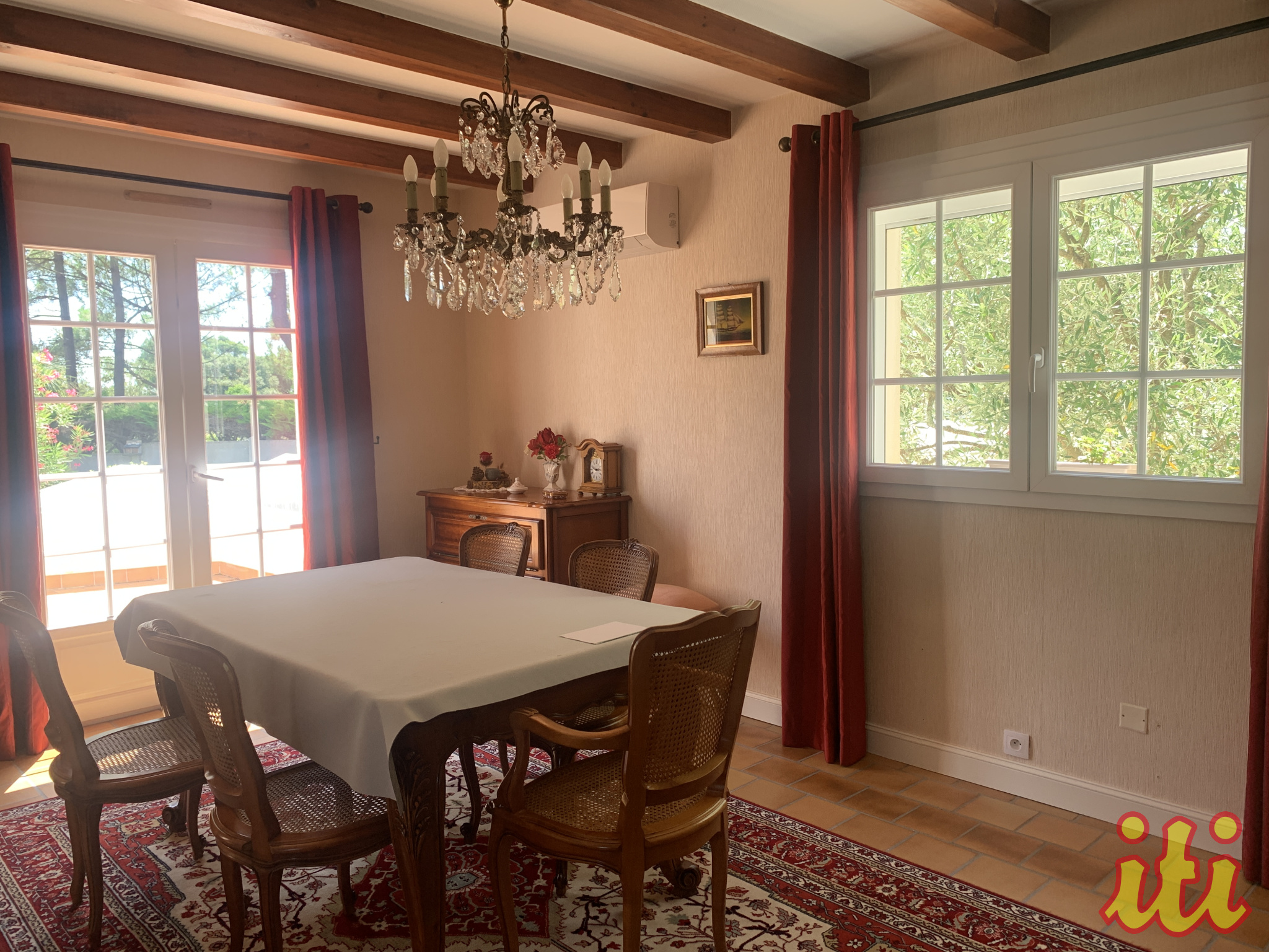 Au pied des commerces de la Pironnière et à 7 mn en vélo de la plage par piste cyclable, cette maison de construction traditionnelle de qualité séduit par son excellent état et son cadre de vie privilégié. Implantée sur un terrain clos de 900 m2, elle se compose au rez de chaussée d’une entrée, cuisine équipée, salon/séjour, 3 chambres, salle d’eau, salle de bains, 2 wc, cellier et 2 chambres supplémentaires sous combles . Coté extérieur, la piscine (10mx5m) bien exposée, les terrasses et le jardin arboré invitent à la détente. Un grand garage de 51 m2 vient compléter l’ensemble.